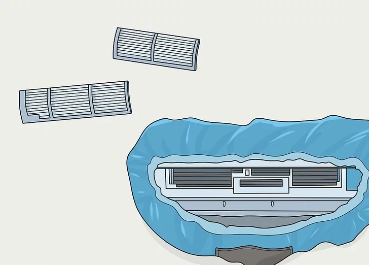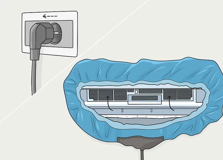 Tüm split klima sisteminin etrafına bir temizlik torbası koyun. Toz veya kirin zemine ulaşmasını önlemek için cihazınızın tamamını yeni bir temizlik torbasıyla çevreleyin.