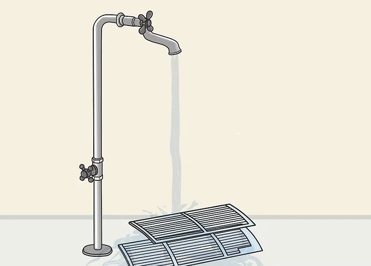 Çıkarılan hava filtrelerini akan su altında durulayın. Hava filtrelerini bir lavaboya veya büyük bir leğene alın ve üzerine soğuk musluk suyu dökün. Filtreleriniz o kadar kirli değilse, durulamak tozun giderilmesi için yeterli olabilir. Akan su işe yaramıyorsa, yumuşak bir temizlik deterjanıyla hafifçe ovalamak için bir sünger veya temizleme pedi kullanın. Daha sonra bunları durulayın ve açık havada kurumaya bırakın.